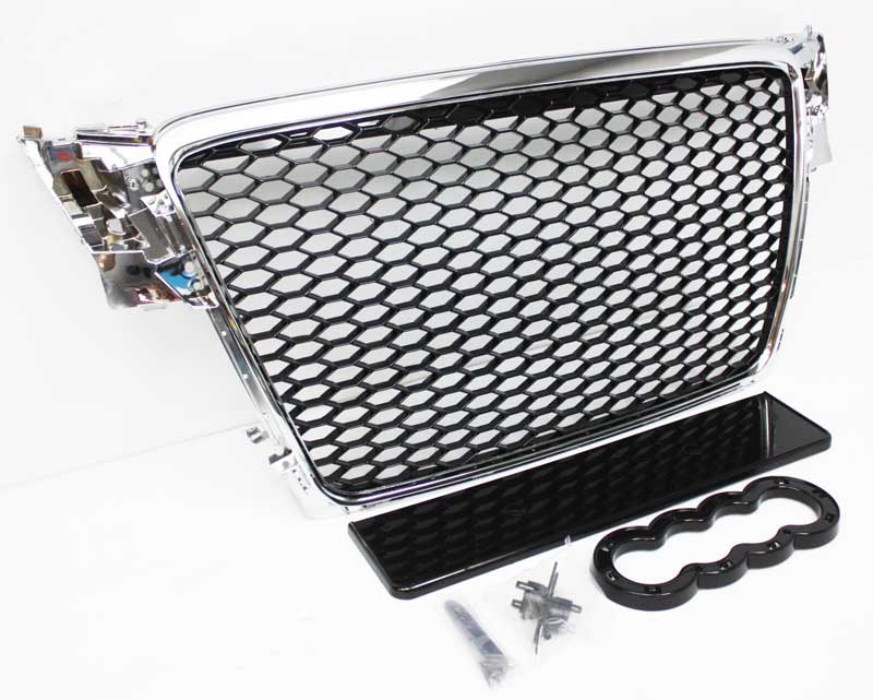Fits : All Audi A4 B8. Chrome. New version, the emblem holders can be completely removed if you wish.