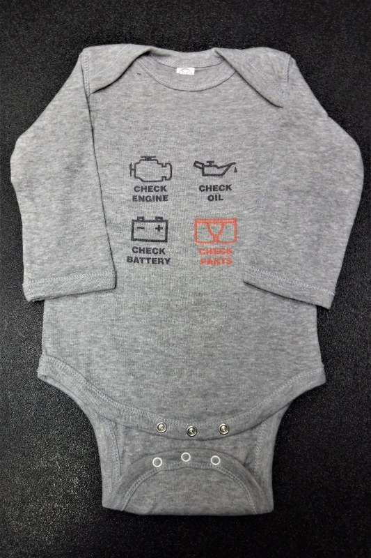 - very cute "check engine light" design - perfect for the automotive mom or dad!