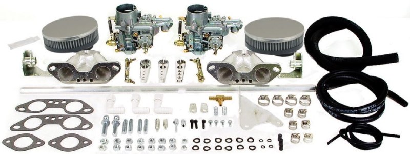 EMPI. Dual 34mm EPC carburetor kit for 1700-2000cc T2 / T4 / 914 Engines ( Bus ). Distance from Base of Intake Manifold to Top of Air Cleaner is 9 inches. Supplied with spare jets. 47-7412-0. Carburetors are not returnable.