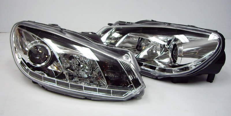 Devil Headlights CHROME ( S5 Style Headlights ) for MK6 Golf & GTI & Jetta SPORT WAGON (facelift) with 10 pin connector. ( Cars that were not supplied with factory HID headlights ). With projectors, and bright LEDs. Requires H1 Hi beam bulb / H7 Low beam bulb. Plastic lens.