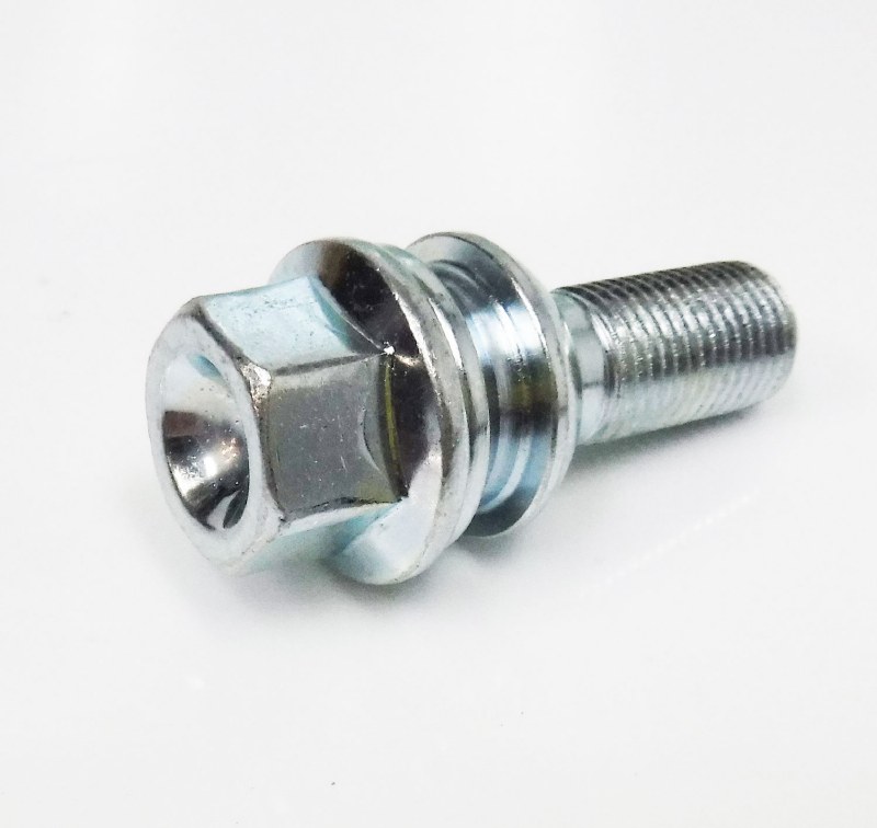 PORSCHE style ball seat bolt with rotating collar. Bigger sized ball than typical VW/AUDI ball seat bolts. 19mm bolt head. Cayenne / Touareg wheel bolts. Shaft length BELOW the floating ball seat is 28mm. Shaft length INCLUDING the floating ball seat is 43mm.