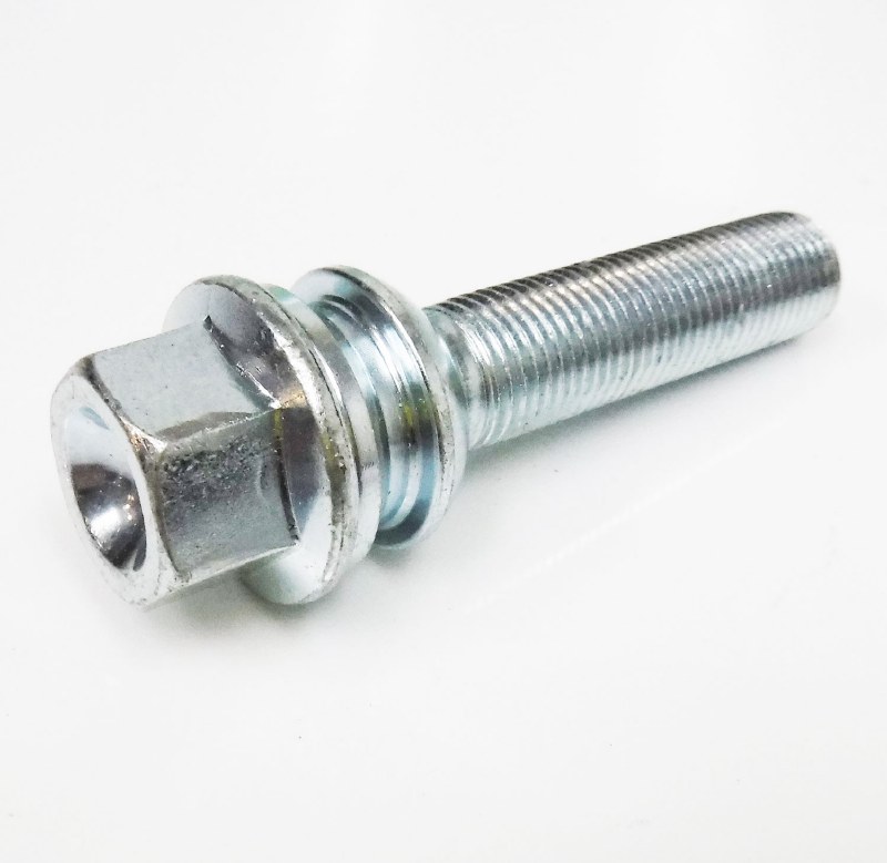 PORSCHE style ball seat bolt with rotating collar. Bigger sized ball than typical VW/AUDI ball seat bolts. 19mm bolt head. Cayenne / Touareg wheel bolts. Shaft length BELOW the floating ball seat is 53mm. Shaft length INCLUDING the floating ball seat is 68mm.