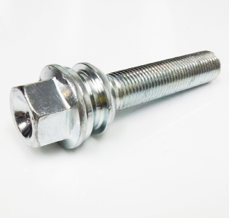PORSCHE style ball seat bolt with rotating collar. Bigger sized ball than typical VW/AUDI ball seat bolts. 19mm bolt head. Cayenne / Touareg wheel bolts. Shaft length BELOW the floating ball seat is 58mm. Shaft length INCLUDING the floating ball seat is 73mm.