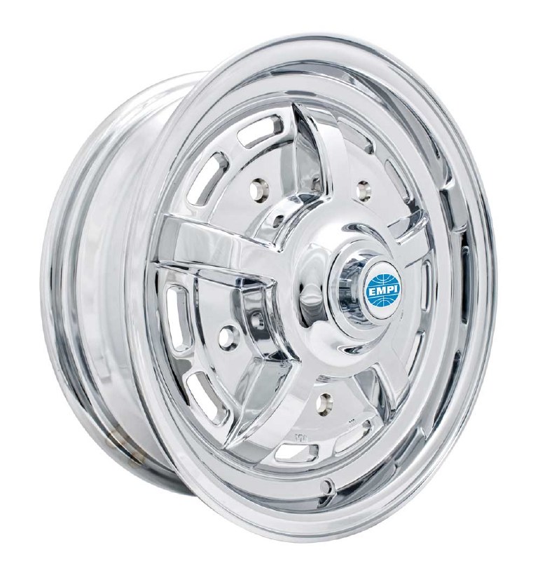 EMPI Sprintstar. Chrome. 15x5 5/205 ET20. CENTRE CAPS INCLUDED. Use with cone seat bolts or studs/nuts. We supply this wheel by special order, delivery apox 2-3 weeks.