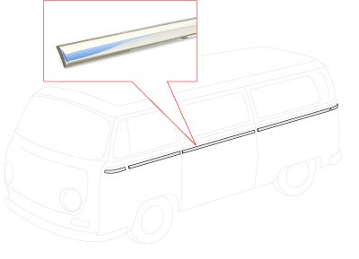 WOLFSBURG WEST. DELUXE BUS BODY MOLDING KIT, includes all pieces as original, 1968-1971 Deluxe model Buses, includes mounting screws and clips, made from polished stainless steel.
