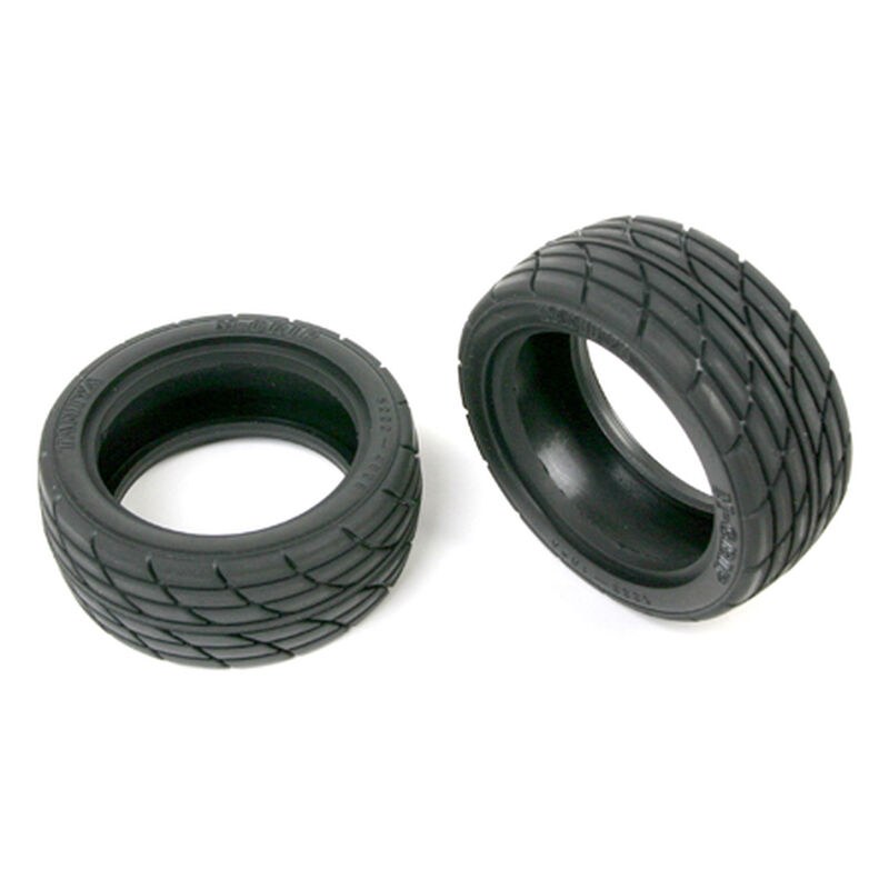TAMIYA 1/10 M-2 Front/Rear Tires (2): On-Road Tires. Package includes two tires.