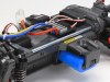 Based around a tough monocoque frame with integrated gearboxes, this compact 4WD chassis gives a thrilling drive whether you take it on road or flat dirt surfaces. It features a rear-mounted motor, with gear-driven rear wheels and a propeller shaft taking power to the front. Both front and rear gearboxes have differential gears. The battery pack location in the chassis center secures excellent balance, while 4-wheel independent double wishbone suspension employs friction dampers.
