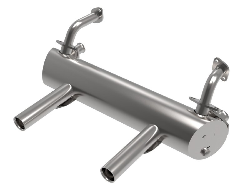 VINTAGE SPEED. Fits Beetle 1200 40hp Stale Air 1200cc. Version WITH heat risers. Does not fit 1300-1600cc engines. NOTE : the headers with heat riser connections are not shown on the pic of this muffler, but ARE included with this muffler.